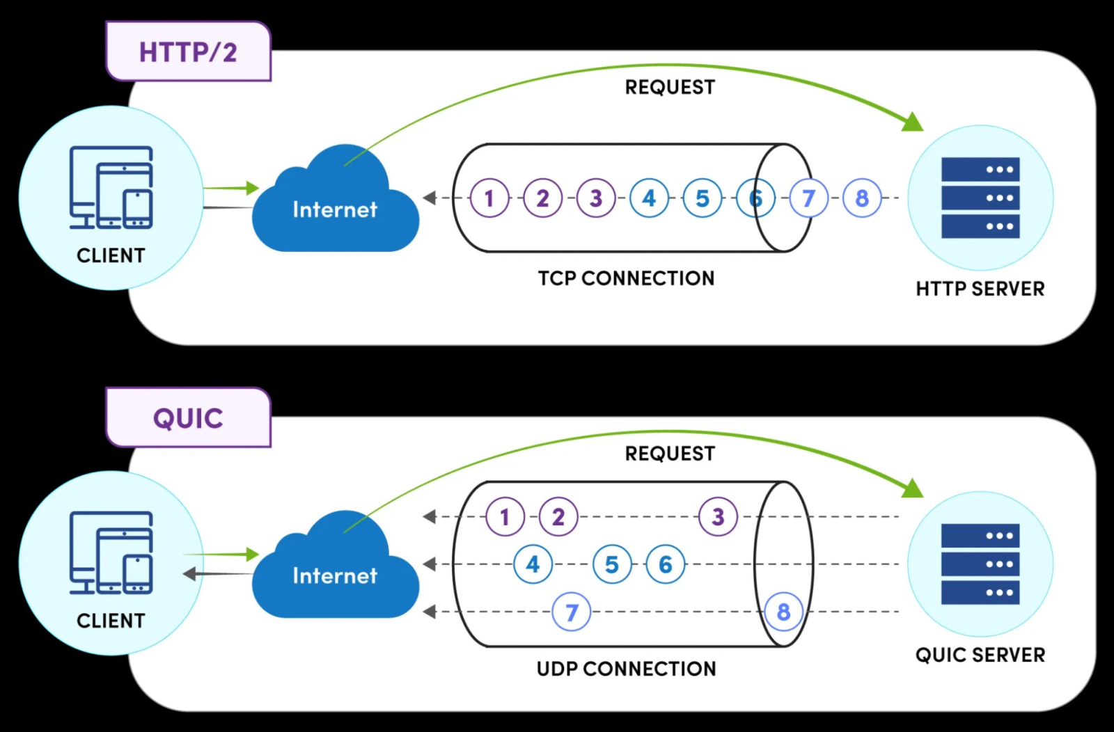 QUIC là một giao thức truyền mạng được phát triển bởi Google vào năm 2012. Chính vì nó không dùng TCP nên sẽ không bị vấn đề về HOL như HTTP/2.